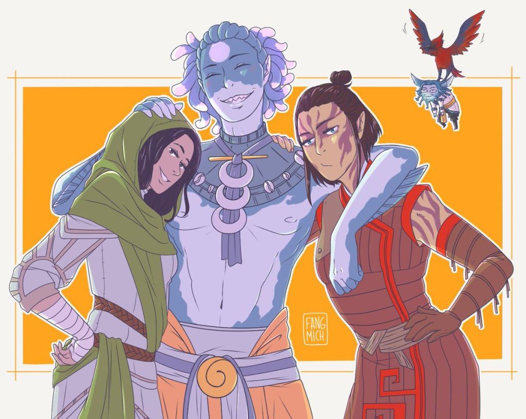 Assuming this is fan art from the game, what does it tell you? I see very few identifiable races. There is some dark skin and a couple with white skin — however, ears suggest a non-humanoid. Sexism may still play a part since the females seem to be smaller than their male counterparts. I do not see them hypersexualized. The first image shows the male character with far less clothing than the women. The last image shows a shapely female but still in an appropriate amount of clothing.